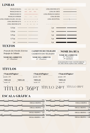 É um conjunto de álbuns prontos para Layout do Sketchup com símbolos essenciais para projetos de arquitetura.